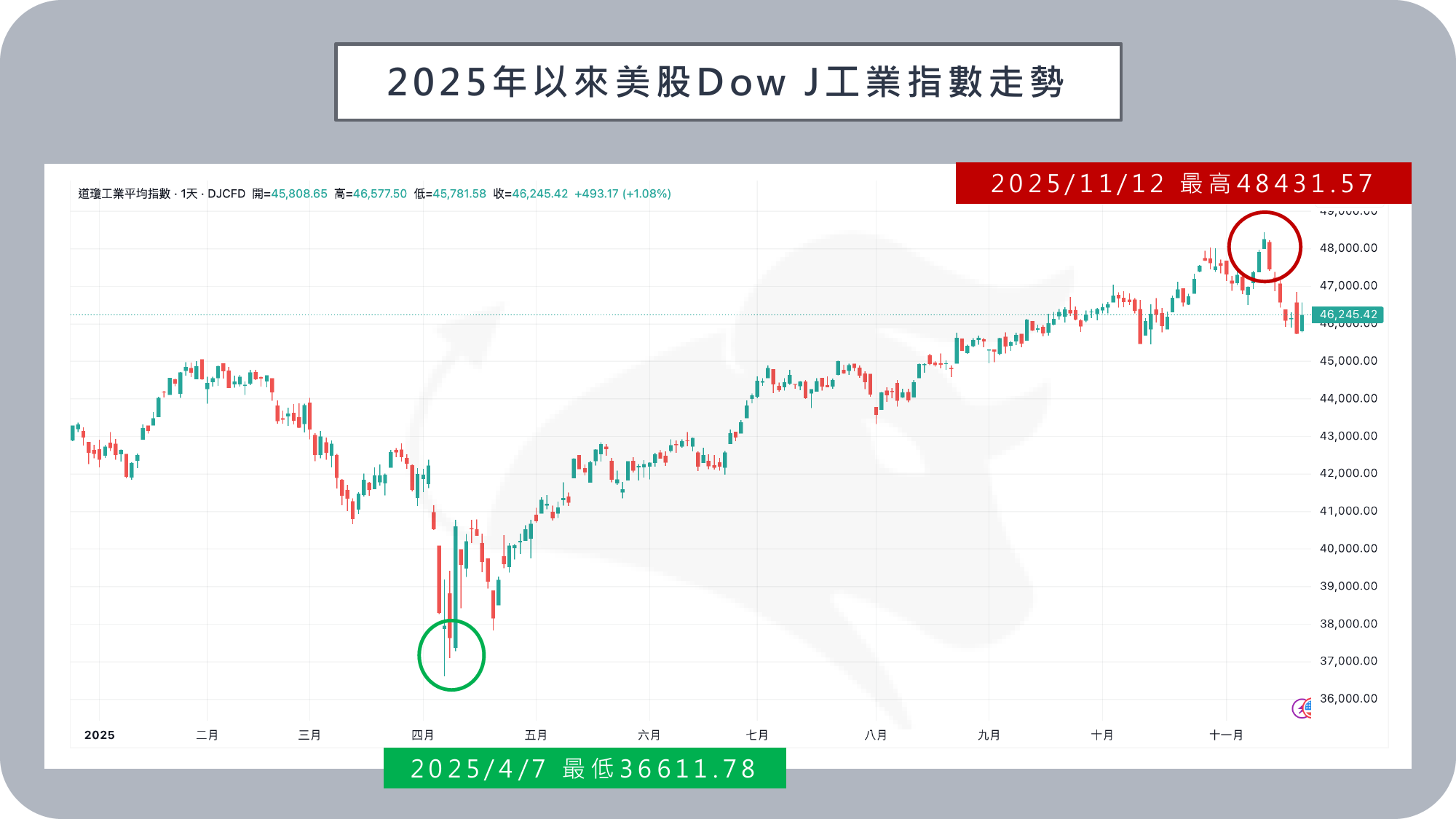 美股在利率預期反彈與 Fed 官員偏鴿言論推動下全面收漲,美股反彈,Dow J 工業指數一度大漲超過 800 點,終場仍收高 493 點,收在 46,245.41 點;S&P 500 指數上漲 64.23 點,收在 6,602.99 點;NASDAQ 指數上漲 195.04 點,收在 22,273.09 點;費城半導體指數上漲 54.367 點,收在 6,406.434 點。市場普遍認為只要 12 月降息預期不被完全排除,美股就有支撐力。