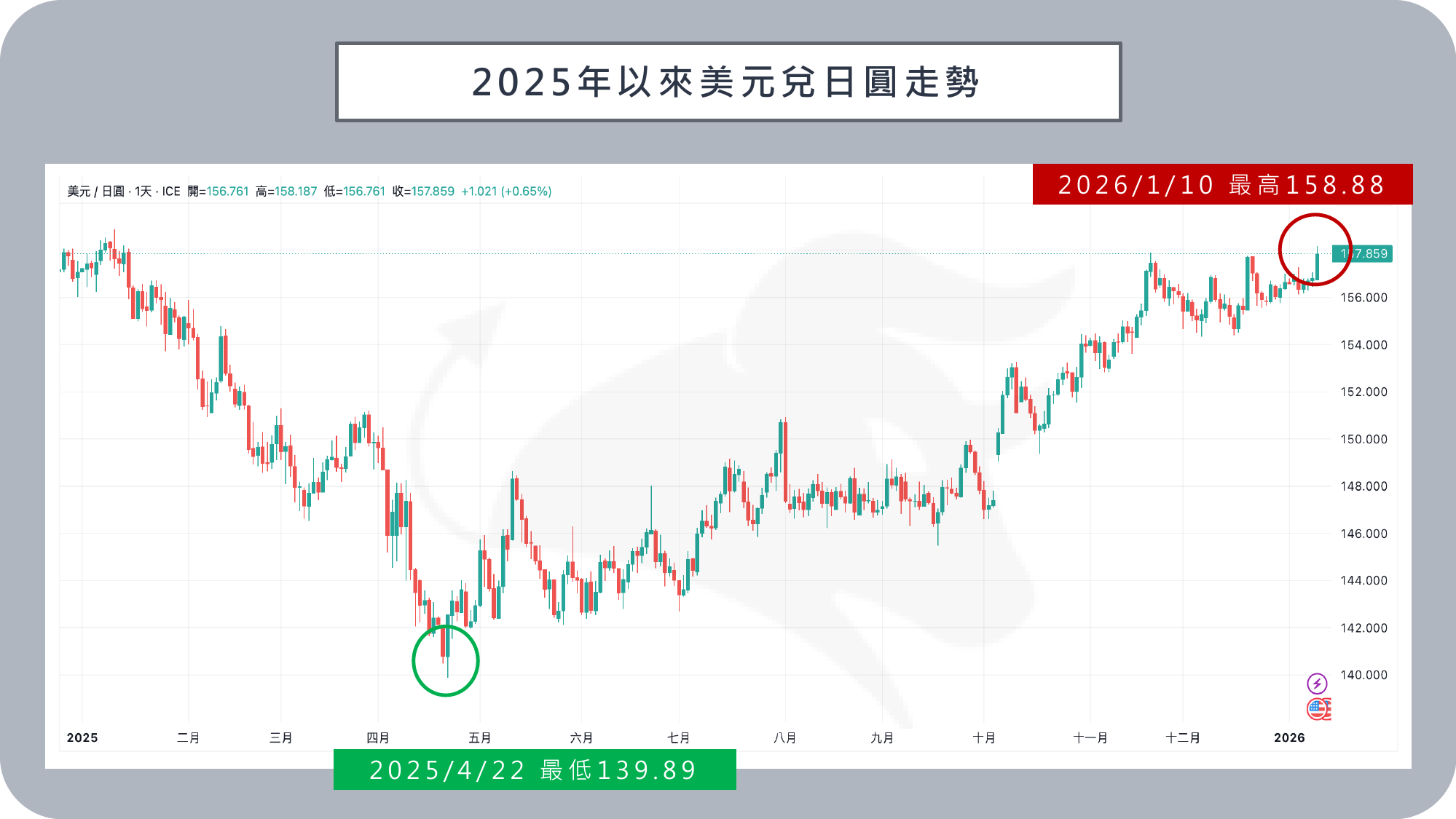消息一出,引發金融市場與政界高度關注,日圓兌美元隨即走貶,一度貶破158 日圓兌 1 美元,來到 158.05,創 2025 年 1 月以來新低,顯示市場對日本政局不確定性的敏感反應。