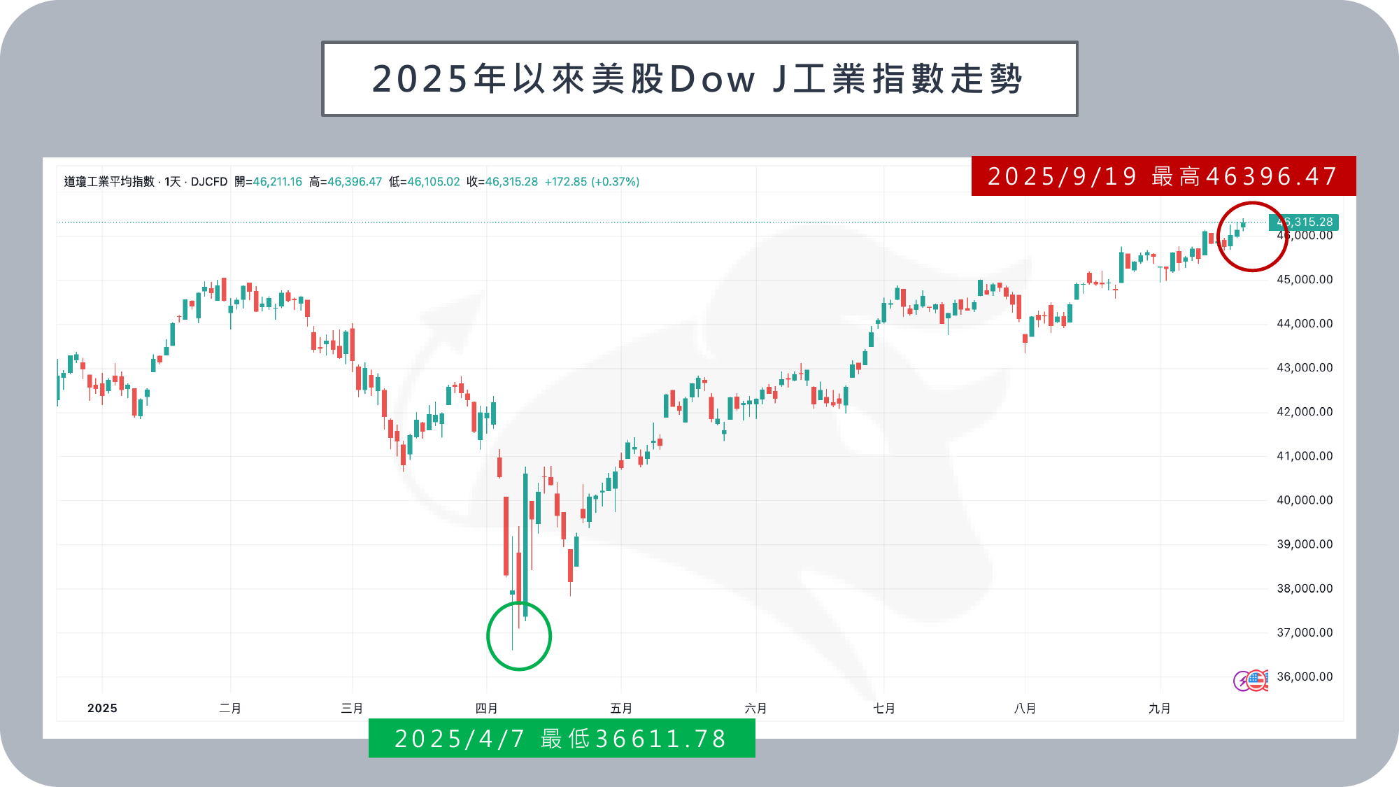 9/18 美國聯準會 Fed 在 9 月利率決策會議宣布降息 1 碼,將聯邦基金利率區間下調至 4% ~ 4.25% 。決議以 11 比 1 通過,新任理事史蒂芬.米蘭投下唯一反對票,主張一次降息 2 碼。消息公布後,美股走勢分歧,Dow J 工業指數一度擴大漲幅至 504 點,收盤上漲 260.42 點,收在 46,018.32;S&P 500 指數終場下跌 0.10% ,收在 6,600.35 ;NASDAQ指數下跌 0.33%,收在22,261.33 ;費城半導體指數下滑 0.31% ,收在 6,060.22。