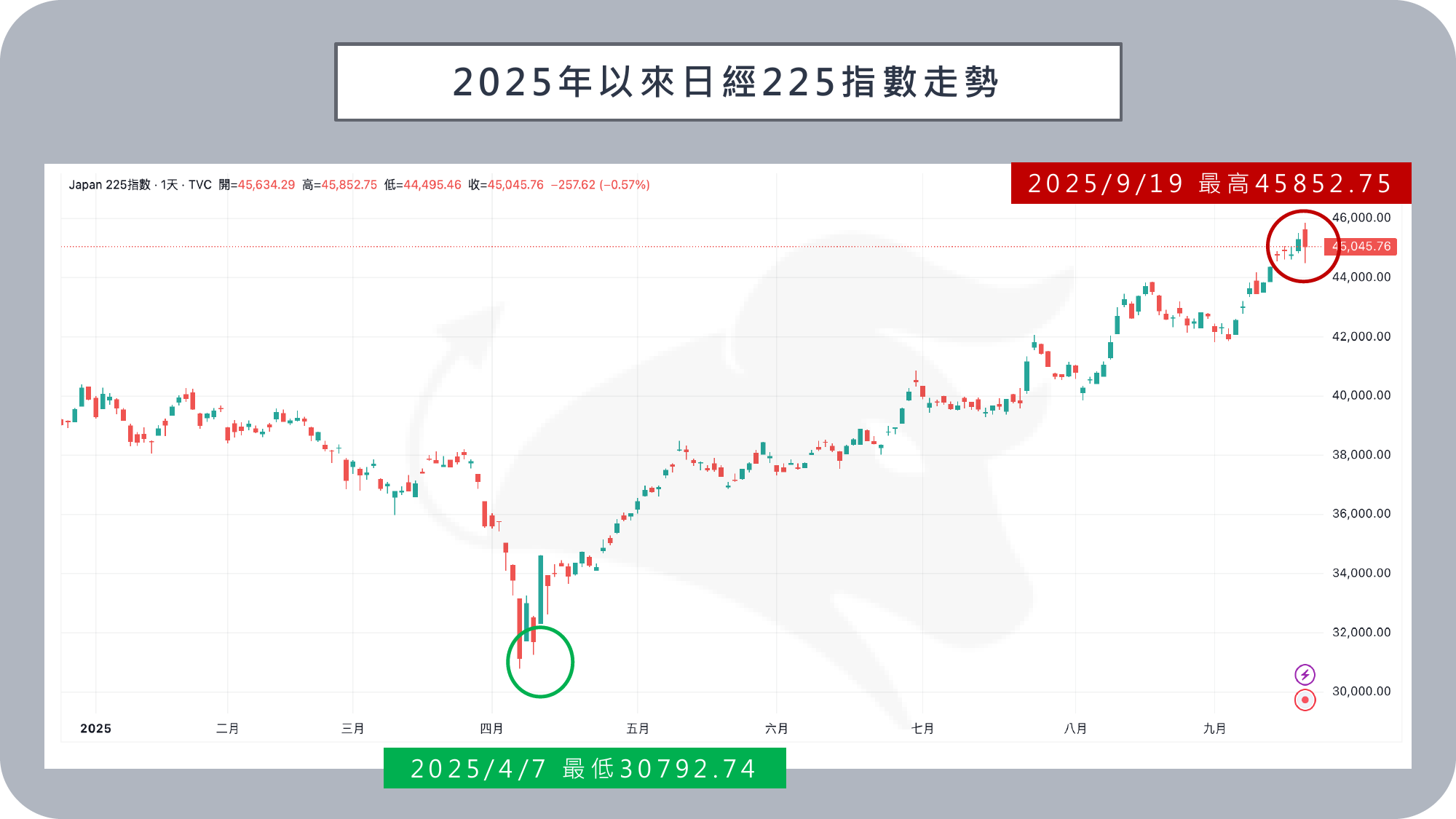 利率與資金流向的再平衡也正影響市場情緒。美國聯準會已啟動降息,若日本在年底前跟進升息,美元與日圓利差將收斂,對以低息日圓為基礎的利差交易衝擊最大。消息公布後,日本日經 225 指數盤中一度衝上歷史新高 45,852 點,隨後急挫逾 800 點,收跌 0.6% 至 45,045.81 點;日圓則在鷹派訊息支撐下一度走強,最終漲幅收斂,收在 147.8 日圓兌美元,約小升 0.1%。