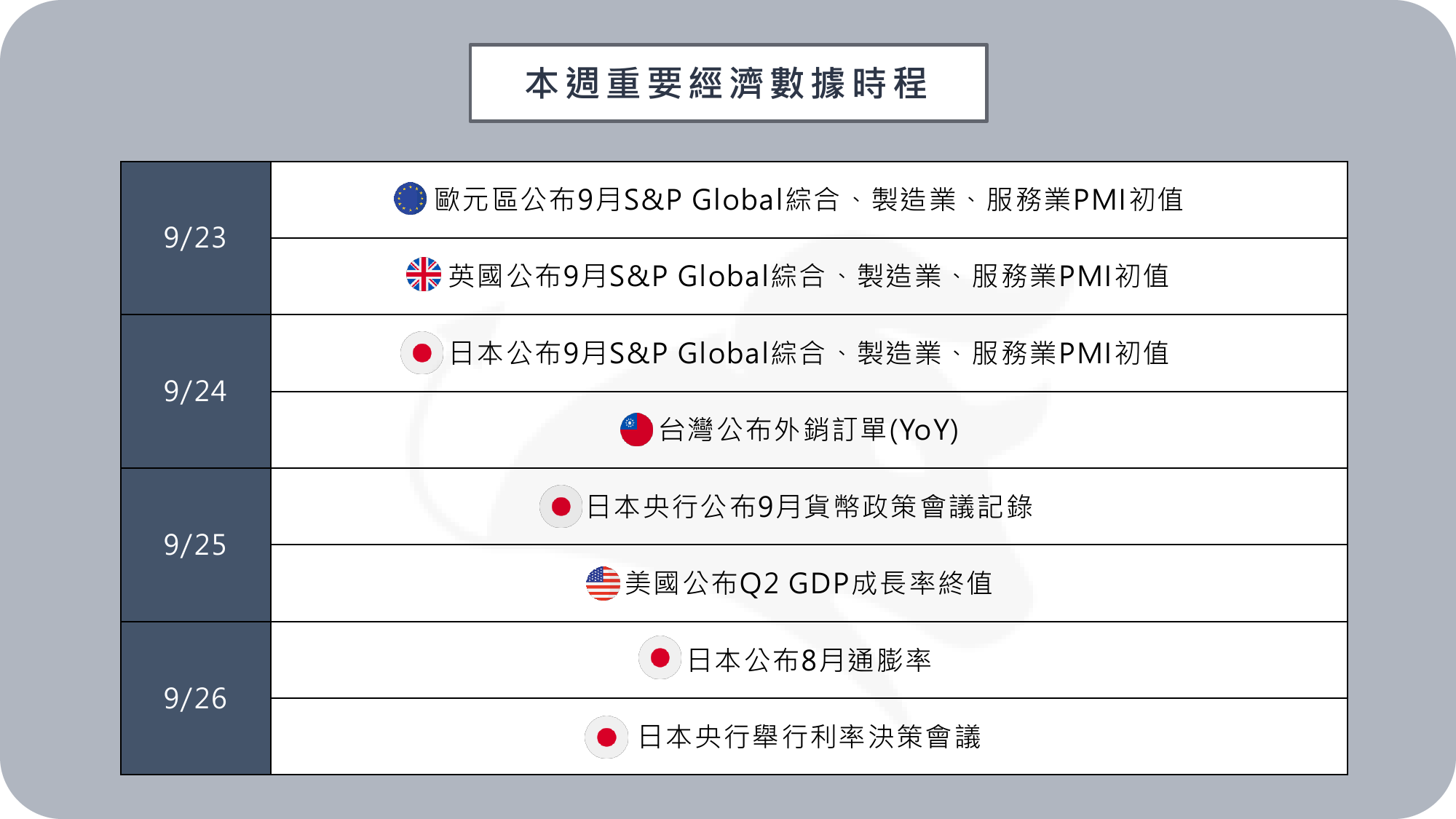 本週全球經濟數據時程