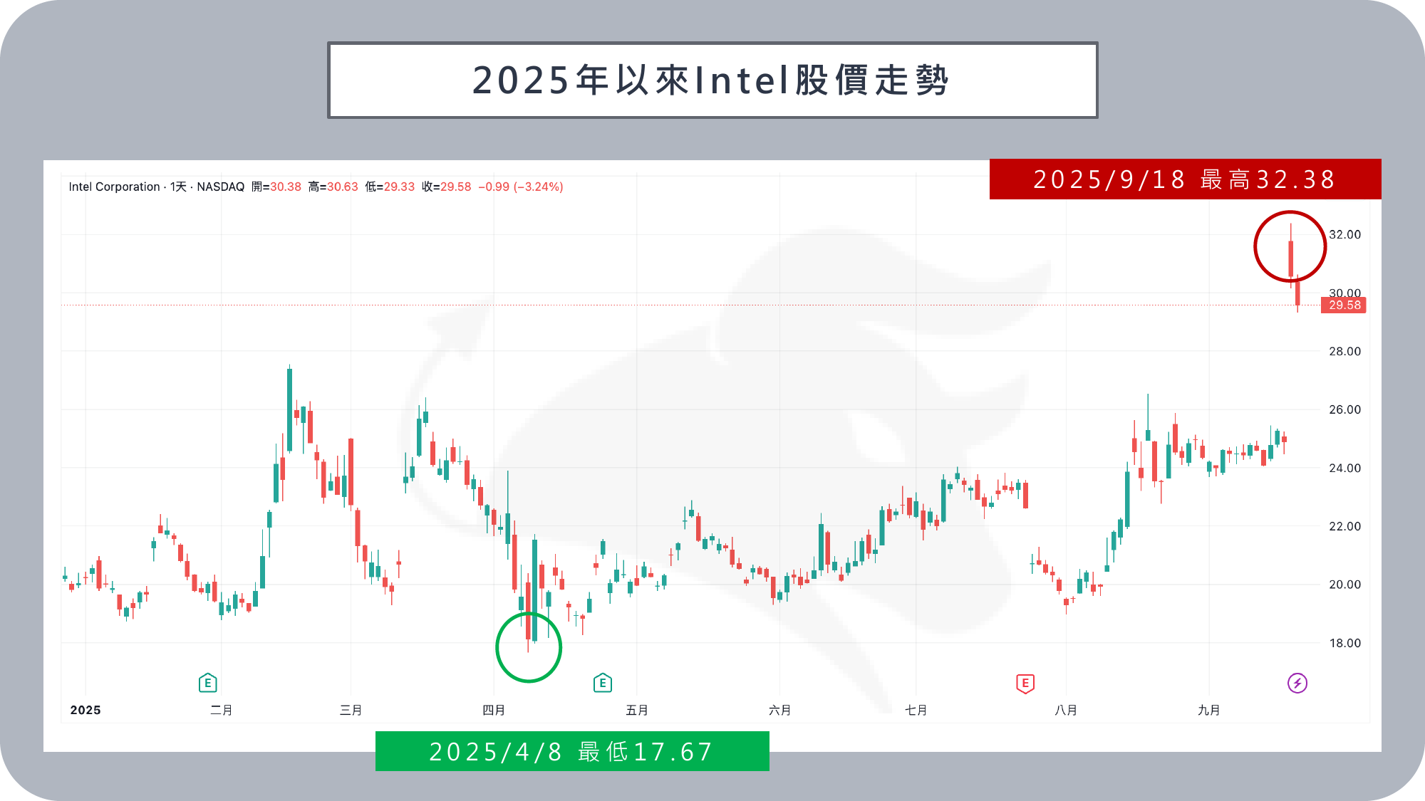 在投資層面,NVIDIA 宣布以每股 23.28 美元價格入股 Intel,投資總額達 50 億美元,取得約 4% 股份。市場普遍解讀這不僅象徵 NVIDIA 對 Intel 的信任,也可能加速 Intel 在 14A 製程等先進製造的推進。消息公布後, Intel 股價狂飆 22.77% ,收在每股 30.57 美元,創下近 38 年來最佳單日表現。輝達則攀升 3.49% ,收在每股 176.24 美元。