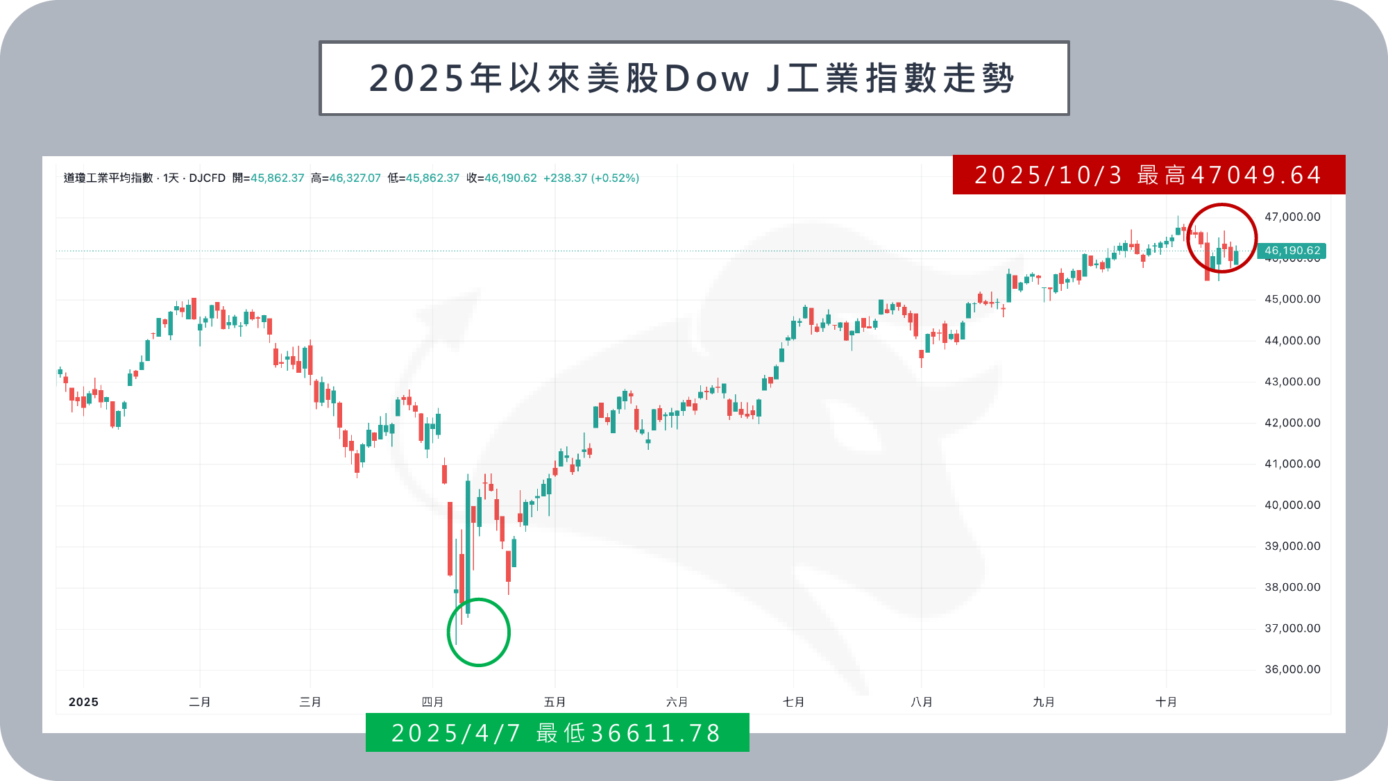 此外,美中貿易局勢近期出現緩和跡象,10/17 美國財長貝森特與貿易代表葛里爾與中國國務院副總理何立峰進行視訊通話,雙方同意盡快舉行新一輪經貿磋商。貝森特表示,兩國關係「已有降溫」,並透露下週將再度會晤。中國官方媒體亦報導,雙方就落實兩國元首共識進行「坦誠、深入且建設性」的交流。市場情緒受美國總統川普與財長貝森特釋出的美中貿易緩和訊號提振,10/17 美股三大指數開盤震盪後翻紅,Dow J 工業指數收漲 238.37 點,收在46,190.61 點; S&P 500 上漲 0.53%,收 6,664.01 點;NASDAQ 上漲 0.52%,收 22,679.98 點。