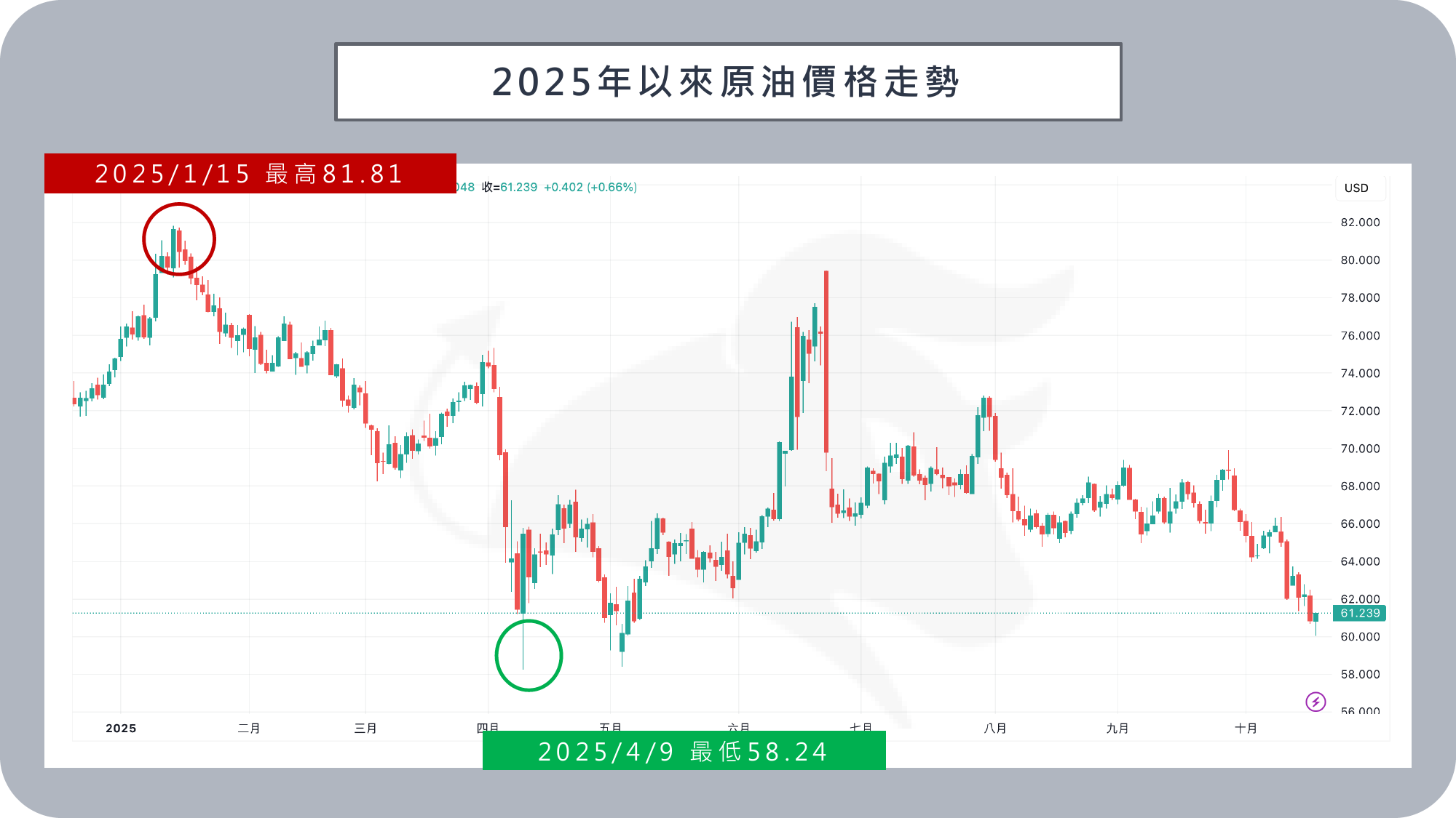 市場對美俄再度展開高層對話反應強烈。10/16 國際油價下跌逾 1%,創下近五個月低點;10/17 續跌約 3%,反映俄烏停火希望升溫及國際能源署 IEA 預測明年油市將出現供過於求。外界普遍認為,若布達佩斯會談確定舉行,將象徵川普推動「實質停火」的外交轉向。
