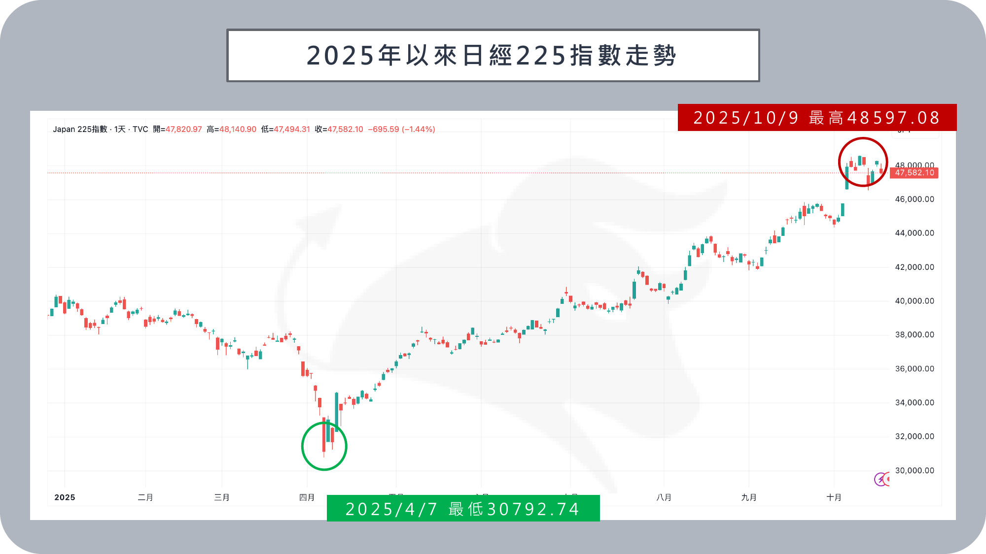 市場則對政治變化迅速反應。10/16 日經指數開高走高,上漲 415.4 點,收在48,088.07 點。日經指數的上漲反映市場對高市早苗執政的預期,認為她可能延續寬鬆貨幣與積極財政政策,刺激經濟與股市。不過市場預期,若玉木勝出,由於他同樣支持貨幣寬鬆政策,短期內可能對日圓造成下行壓力,並引發市場震盪。近期日圓已升破 151 兌美元的關卡,若利率調升預期減弱,可能再度承壓。