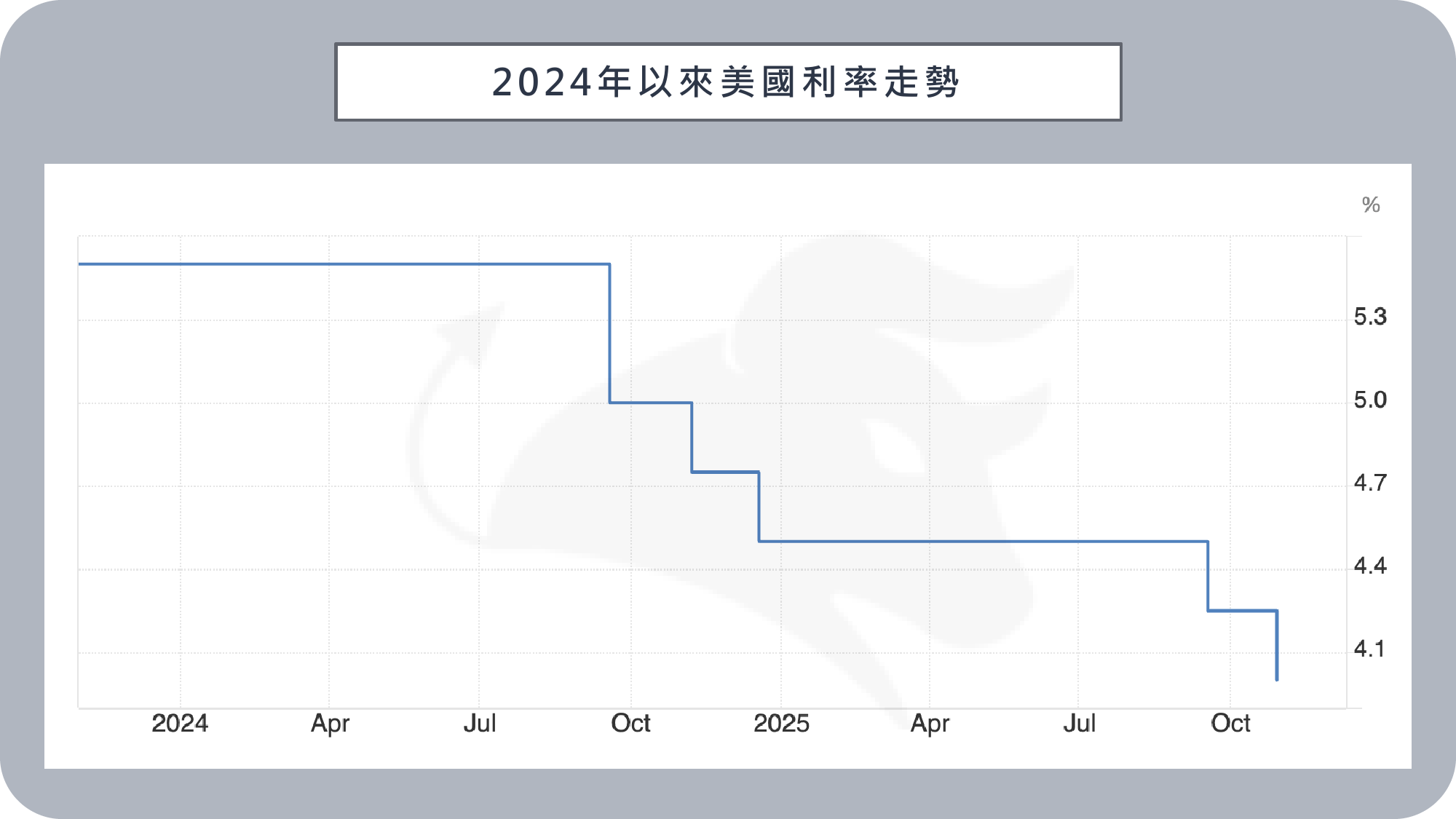 在市場解讀上,真正重要的不是這一次降息本身,而是 Fed 正在把「降息週期」重新定位成:不是刺激景氣,而是微調風險平衡。美國經濟仍溫和擴張、消費仍強,但通膨回到 2% 仍需時間。Fed 此刻態度變保守,原因之一在於:官方數據暫時中斷,決策成本上升。這背景推升美元處在相對高檔,美國 10 年債殖利率逼近 4.1%,債市重新定價反而成為主戲。對市場來說,問題早已不是「降不降息」,而是「這是否會是今年最後一次降息」。