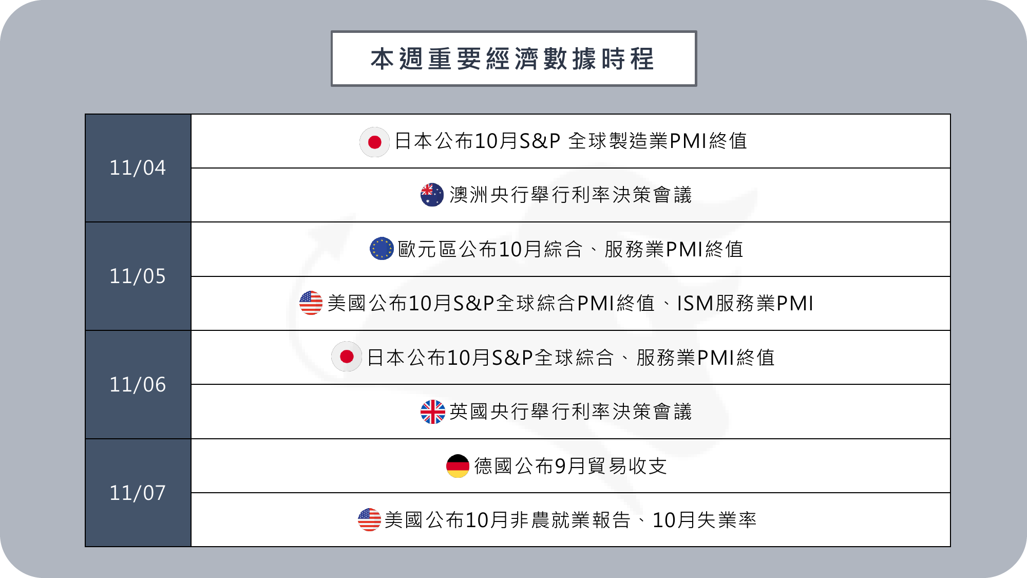 另外,美國政府停擺已來到第四週,美國國會預算辦公室 CBO 報告則指出,停擺已造成第四季 GDP 約一個百分點的成長損失,等同約 180 億美元。如果停擺延長到六或八周,損失將從 280 億美元到 390 億美元,且部分是永遠無法追回的永久性損失,例如門票收入、政府採購延宕等。CBO 估算政府每停擺一個月,永久損失約 70 億美元。目前仍未看到危機解除,國會兩黨對臨時撥款與醫療補貼仍僵持不下。