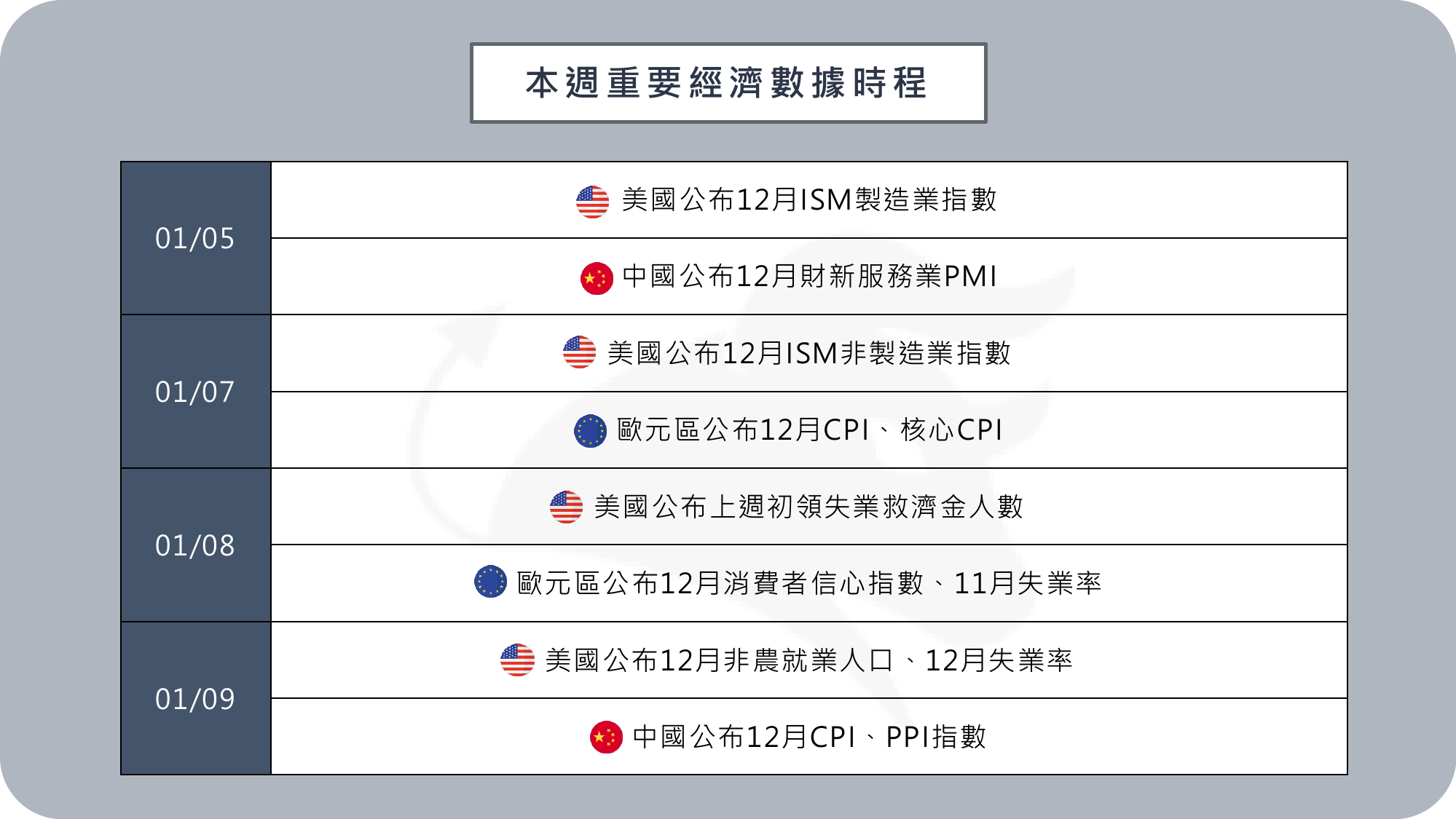 本週全球經濟數據時程