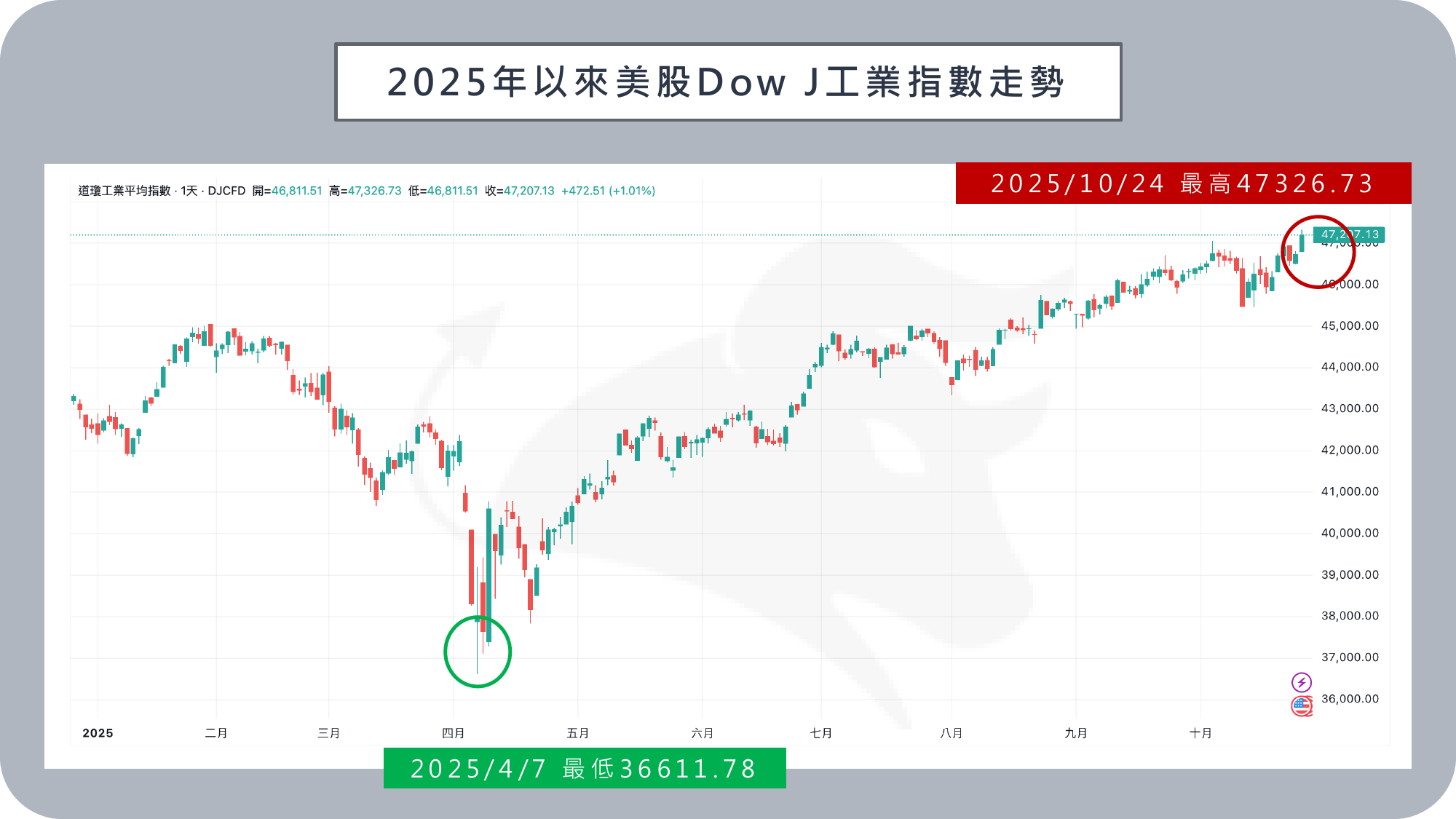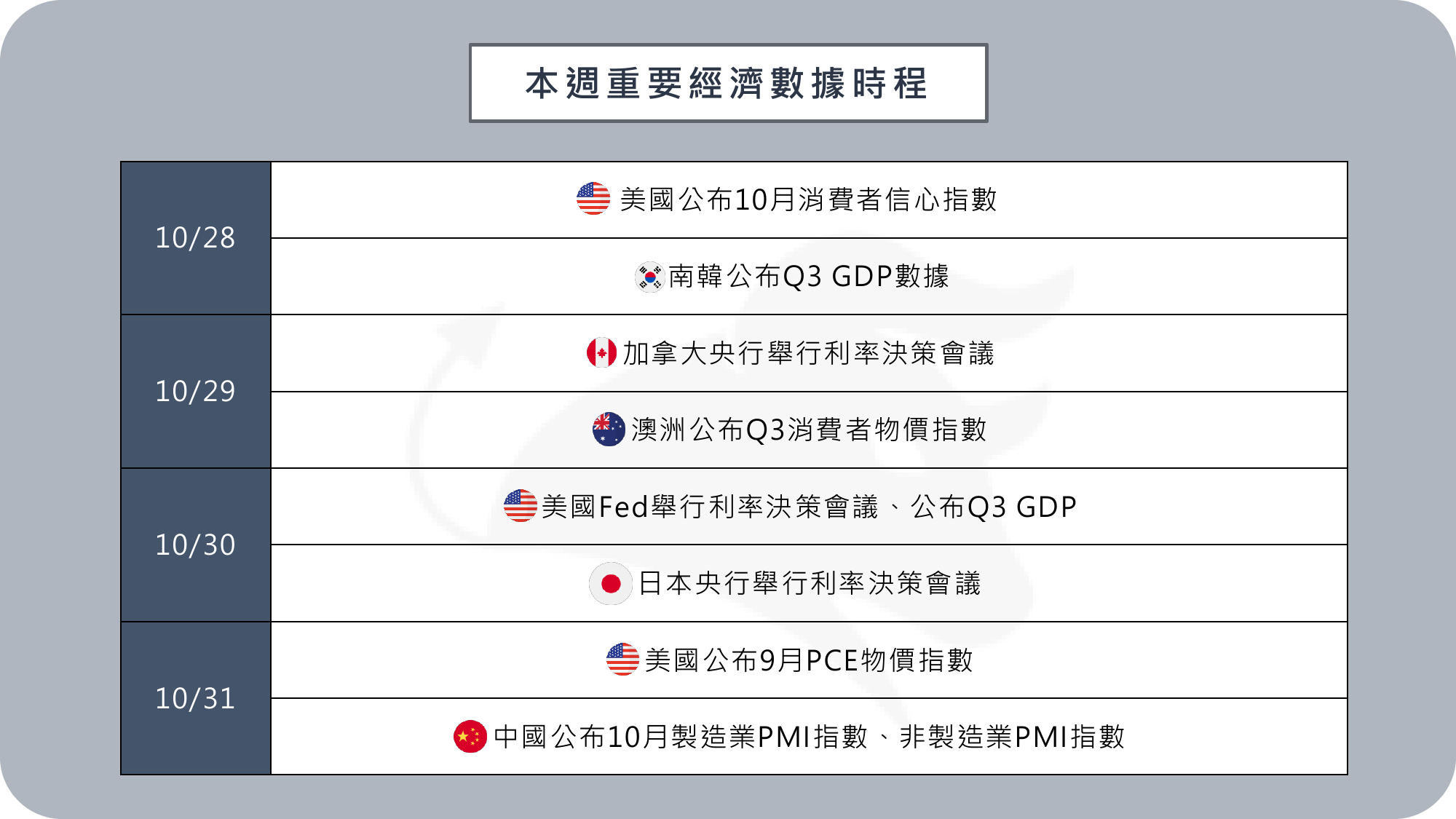 金融市場對通膨低於預期以及利率可能繼續降的反應極為強烈,10/24 美股主要指數全面走高並刷新歷史紀錄,Dow J 工業指數收漲 472.51 點,首次站上 47,000 點之上,收在 47,207.12 點。S&P 500 指數上漲 0.79%,來到 6,791.69 點;NASDAQ 指數大漲 1.15%,收在 23,204.87 點;費城半導體指數勁揚 1.89%,收在 6,976.94 點。顯示投資人預期聯準會的寬鬆將延續、風險資產仍有上攻空間,市場重新啟動寬鬆交易。