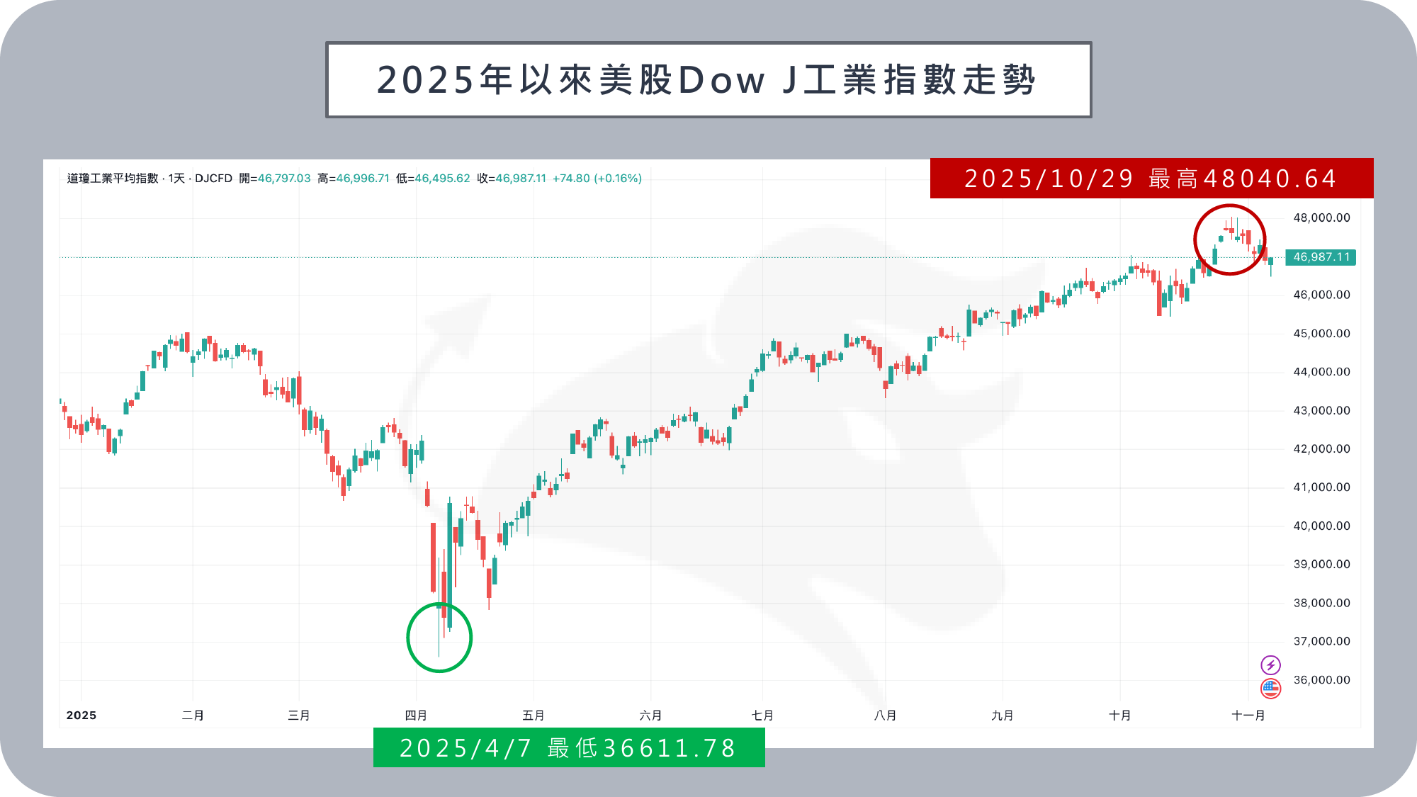同時勞動市場數據也開始扭曲,因政府停擺造成官方統計中斷,芝加哥聯準銀行自行估算 10 月失業率可能升至 4.36%。另一方面,人力顧問 Challenger 公布,美國企業 10 月宣布裁員 15.3 萬人,年增 175.3%,創下 2003 年以來 10 月最高,累計今年 1 至 10 月裁員數突破 100 萬人。這一波削減成本的潮水,以科技業為最重災區,亞馬遜 10 月裁員 1.4 萬人,CEO 更明言生成式 AI 將大幅提高效率、減少人力。報告形容,AI 正在重塑就業市場,其破壞性程度可比 2003 年手機問世對產業的衝擊。AI 將提升效率、減少人力需求,美國企業裁員速度加劇,觸發市場對於經濟惡化的擔憂,11/6 美股承受壓力,Dow J 收盤下跌 398.70 點,收 46,912.30 點,S&P 500 指數下跌 75.97 點,收 6,720.32 點,NASDAQ 挫跌 445.81 點,收 23,053.99 點。