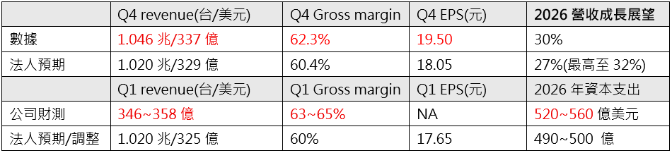 隨著AI加速器陸續導入至N3,公司提到N3今年來到公司平均水準,因此筆者研判維持極高產能利用率,與N2還沒開始貢獻下,將使得26Q1持續上修來,一直到下半年才開始校正回歸。
