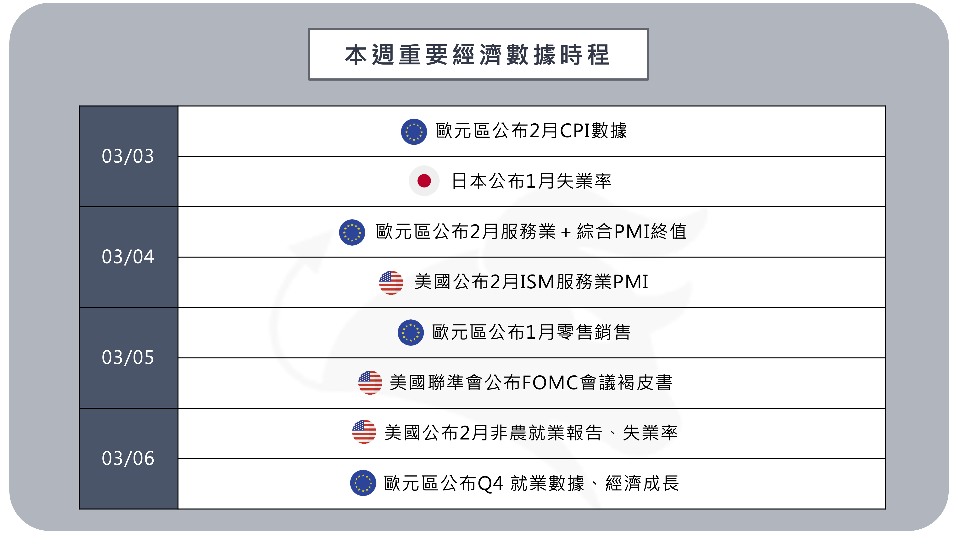本週全球經濟數據時程