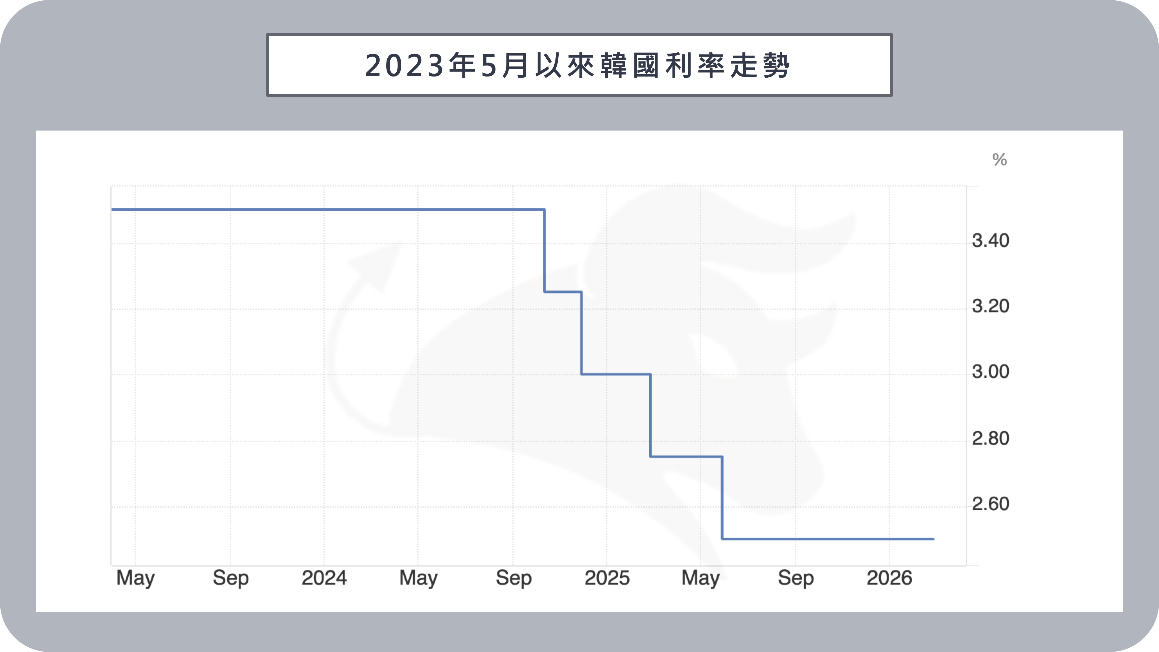 2/26 韓國央行宣布維持基準利率在 2.50% 不變,這是自 2025 年 5 月底以來連續第六次按兵不動。由七人組成的貨幣政策委員會一致決議利率持平,與市場預期相符。韓國央行指出,在出口表現強勁、通膨維持穩定的背景下,決策者有更多時間評估金融穩定風險,尤其是在韓元走勢偏弱與家庭債務持續攀升的情況下,必須審慎因應。